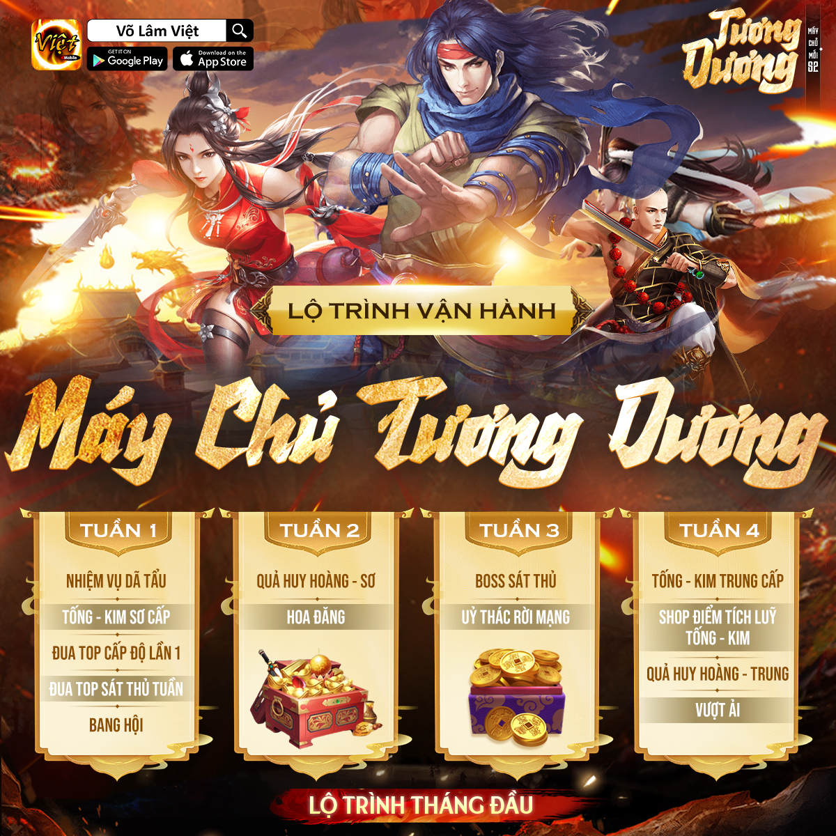 Ban quản trị Võ Lâm Việt xin gửi tới các đại hiệp thông tin lộ trình vận hành của máy chủ S2 Tương Dương trong tháng đầu: