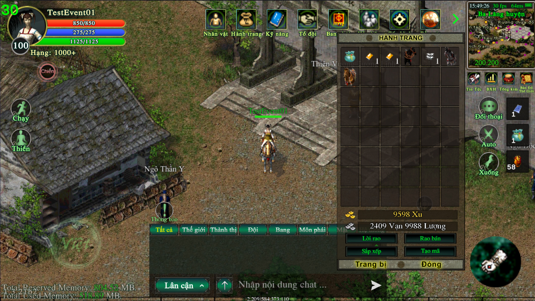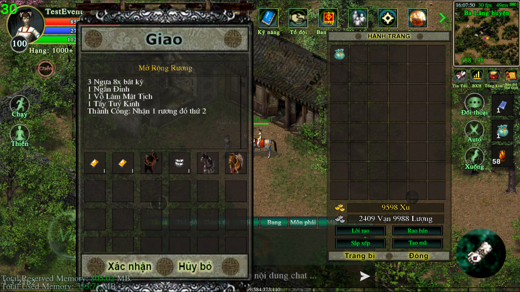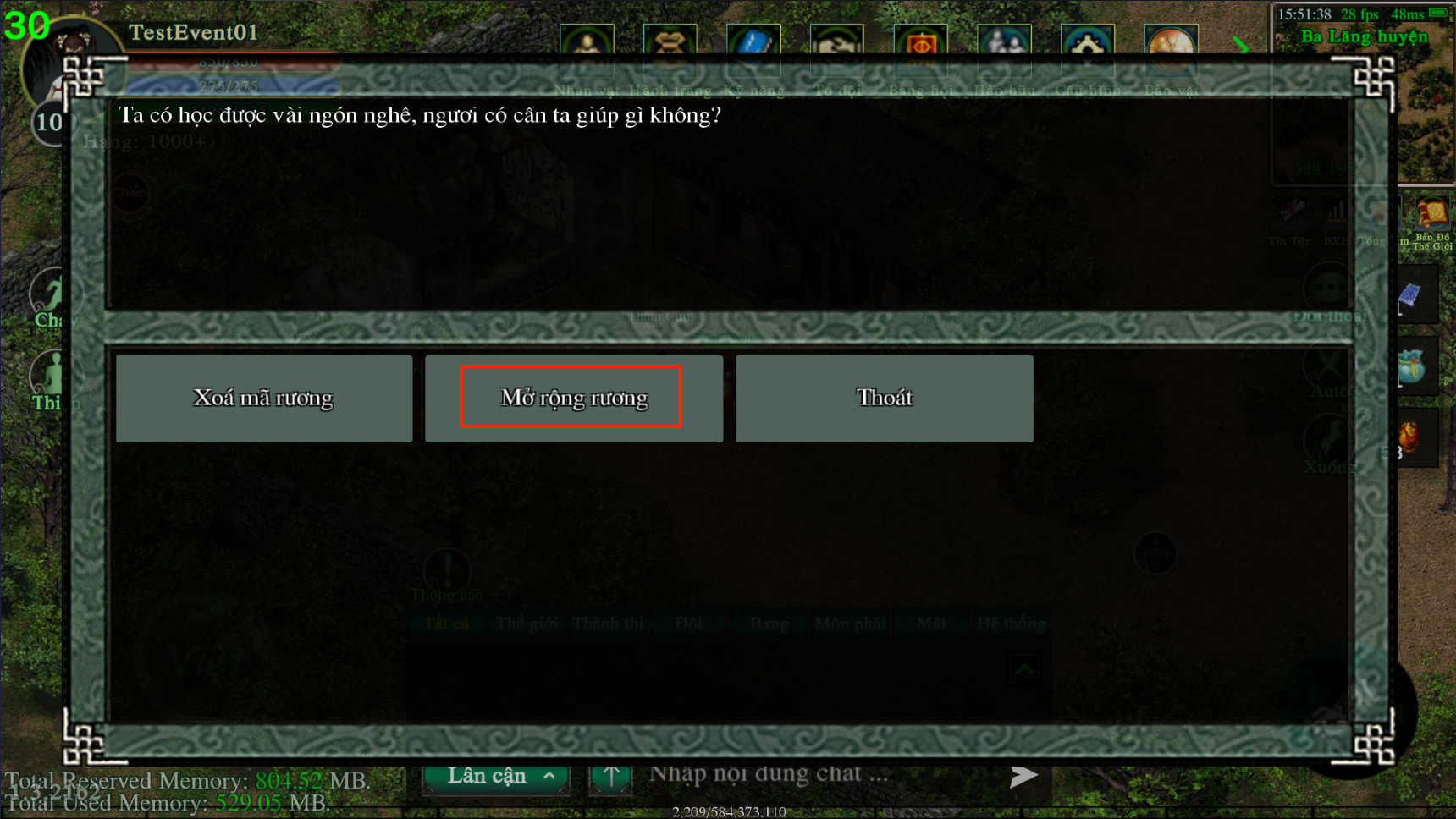 Hành tẩu giang hồ, thu thập vô số vật phẩm, rương chật hẹp, anh hùng khó xử! Võ Lâm Việt nay khai mở tính năng "Mở Rộng Rương Đồ", giúp các vị đại hiệp gia tăng không gian lưu trữ, thỏa sức thu thập kỳ trân dị bảo, chinh phục đỉnh cao võ lâm.